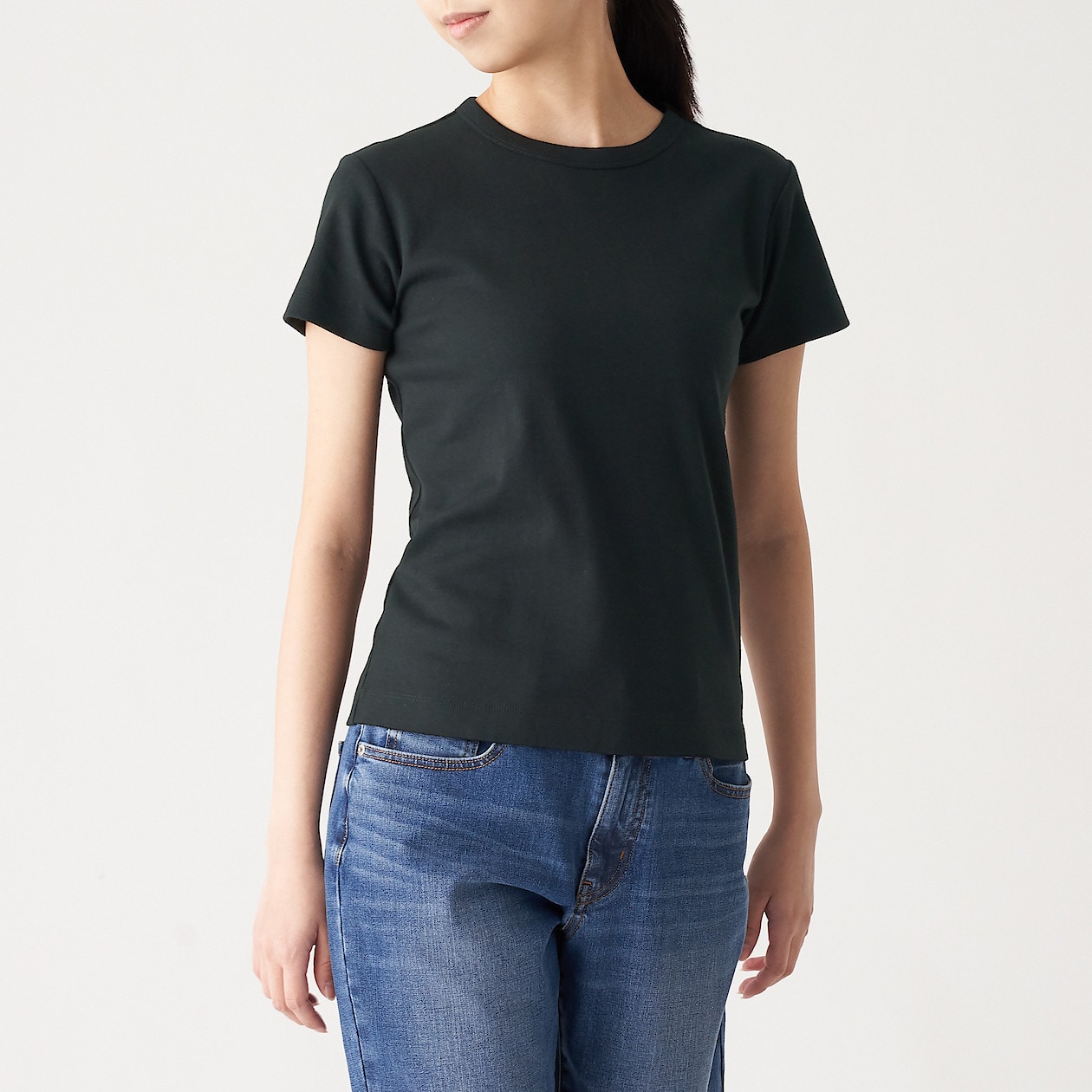 汗じみしにくいフライス編みクルーネック半袖tシャツ 婦人m 黒 Tシャツ カットソー 半袖 婦人 レディース 通販 無印良品
